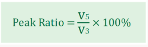 波峰比是用來檢測(cè)鉛酸電池芯正負(fù)極板之間的絕緣品質(zhì)。波峰比是波形的第五個(gè)電壓峰值與第三個(gè)電壓峰值的電壓比例,當(dāng)電池芯的等效并聯(lián)電阻(Rp)較小或絕緣的品質(zhì)較差時(shí),因?yàn)槟芰繐p耗的較多、較快,導(dǎo)致第五個(gè)電壓峰值變得更小,所以絕緣品質(zhì)較差的波峰比會(huì)比絕緣品質(zhì)較好的波峰比更小。波峰比的大小表現(xiàn)出電池芯正負(fù)極板之間絕緣品質(zhì)的狀態(tài)。
