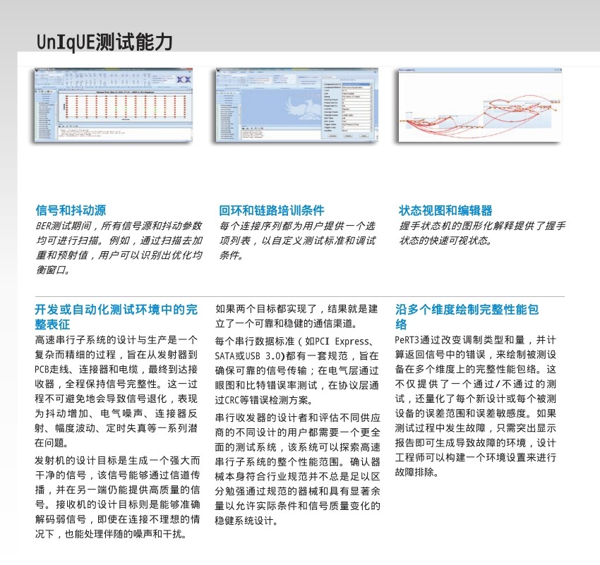 PeRT3 (具有協議使能功能的接收機和發射機容限測試儀)填補了物理層測試和協議層測試之間的空白,為接收機測試和發射機測試提供了更新穎的、更智能化的測試能力。該產品主要是針對于串