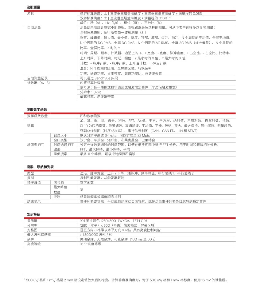 HD3 系列是新一代 InfiniVision 示波器。HD3 引入了我們原本在高速 UXR 系列示波器上所采用的 高性能技術(shù),可以執(zhí)行精準(zhǔn)測量,并且外形也更小巧便攜。 HD3 采用了全新架構(gòu)設(shè)計,與同檔儀器相比,能夠更準(zhǔn)確地分析設(shè)計中的各種信號。定制的 14-bit ADC 和超低噪 聲前端更是為這一系列示波器帶來了超高的垂直分辨率。這些功能特性確保您能夠進行更準(zhǔn)確的測量,從而真實 地洞察產(chǎn)品內(nèi)部的信號情況。 您可以使用內(nèi)置帶寬濾波器獲得高達(dá) 16-bit 的分辨率,準(zhǔn)確度極大提升(提高了 5 倍)。需要使用 1 GHz 的完整 帶寬?即使是在完整帶寬 1 GHz 下,您依然能夠獲得超高的準(zhǔn)確度,顯示標(biāo)度可以放大到 500 uV/ 格。