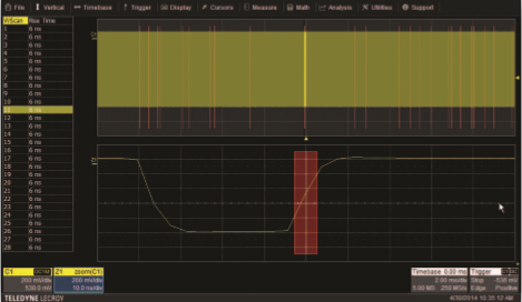 如果某一事件只發生一次,那么模擬示波器通常是不能應付的。而這正是DSO展示其強大能力的時機,DSO能捕捉這種罕見的一次性事件,并能按照所希望的長時間的將它顯示出來。這種罕見的事件甚至可能是干擾的結果。通過用干擾本身來觸發,DSO具有顯示預觸發的能力,包括顯示干擾的原因。